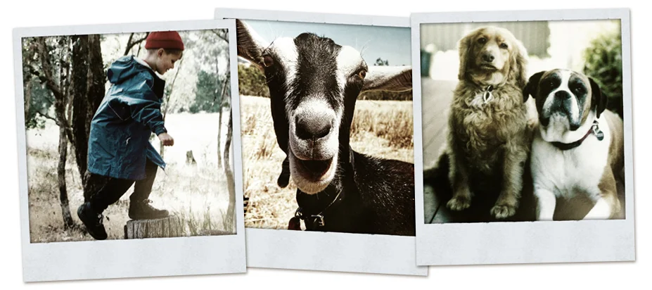 `Bush Kinder' on p.56...I grew up in a tiny primary school out in the bush and it was an amazing experience so this is a great idea. `Blessed Are the Cheese Makers' (p.105)...Tim's article about Holy Goat cheese makers (p.105) and how lucky we are to have them so close to Bendigo. Plus, these two gorgeous doggies (p.167) I know in real life...Lucy & Elli know how to work the camera! :)