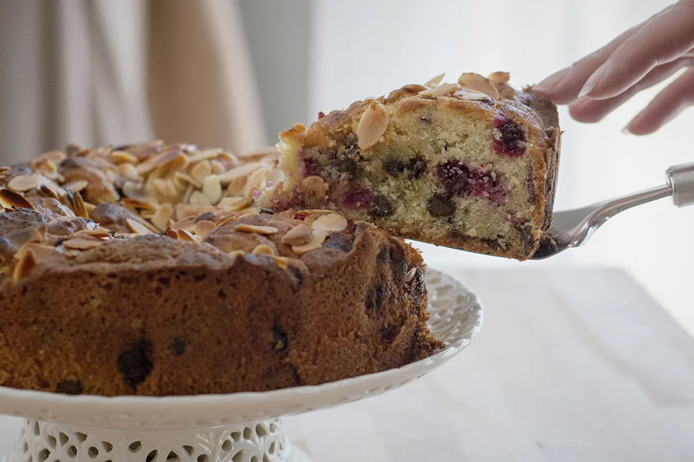 With the softness of almond meal, and the ooze factor of melted dark chocolate and raspberries...this gorgeous tea cake goes perfectly with a weekend magazine read, or afternoon tea with friends.