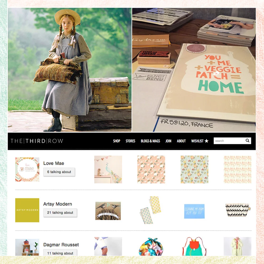 - The Third Row: You know when you're flipping through a magazine and there's tonnes of awesome independent stores and designers mentioned and you think to yourself how awesome it would be to be able to browse them all in one place...organized by category...and be able to see which ones are being talked about at the moment? Dream no more...that's what The Third Row does...a curated indie collection from your favourite magazines/blogs just waiting for you to start scrolling through. Love.